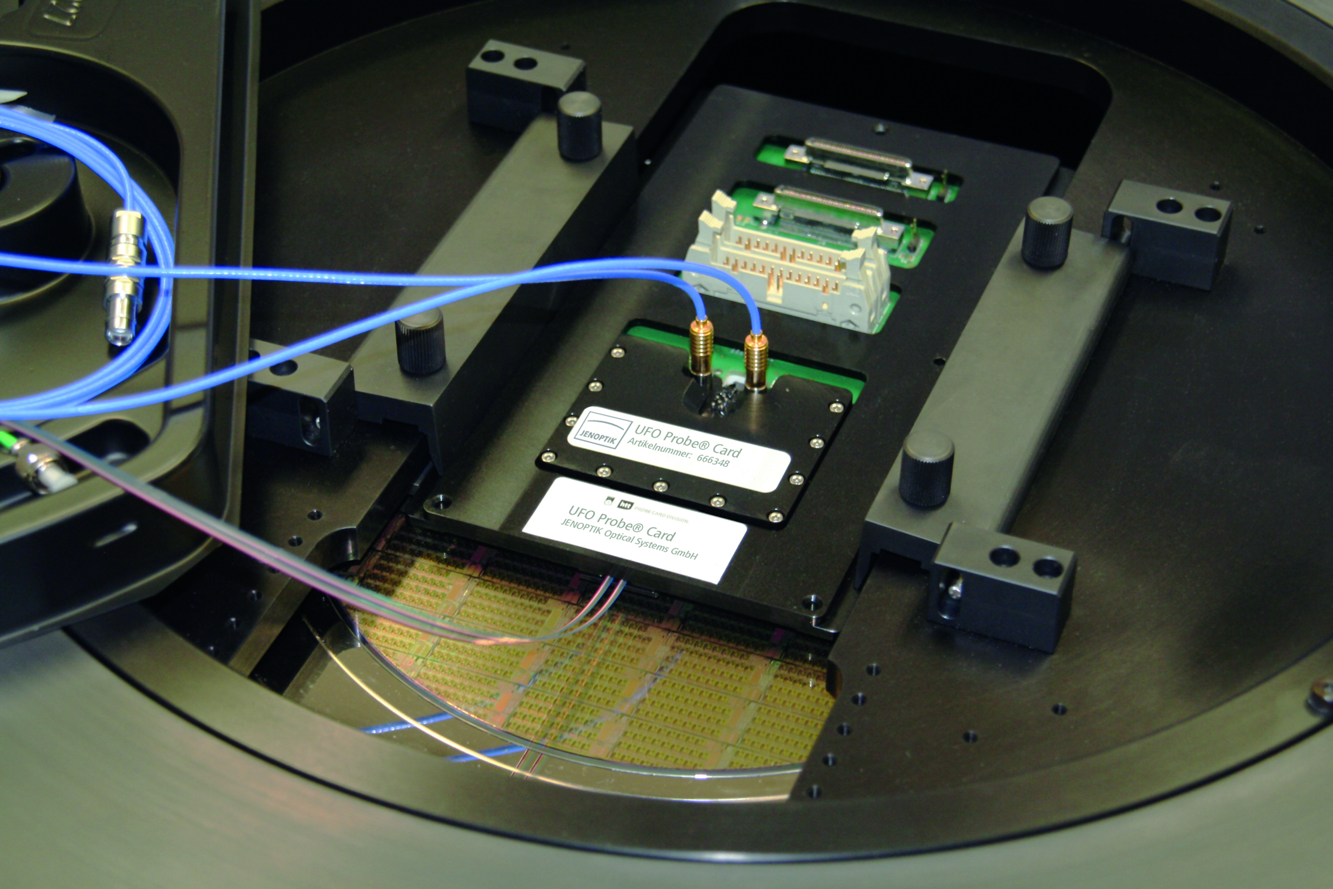 RoodMicrotec nutzt die UFO Probe® Card-Technologie von Jenoptik für seine PIC-Wafer-Level-Tests | Final-Tests sind ein wichtiger Bestandteil der Supply Chain von elektronischen Bauteilen. Für integrierte Schaltkreise (ICs) sind diese fest etabliert – für integrierte photonische Schaltkreise (PICs) ist das Test-Eco-System noch im Aufbau. Einen essenziellen Baustein für neuartige PIC-Wafer-Level-Tests liefert Jenoptik mit der opto-elektronischen UFO Probe® Card. RoodMicrotec profitiert von einer schnellen und unkomplizierten Integration, hoher Flexibilität sowie modernster Test-Technologie. Foto1: Plug & Play der hybriden Prüfkarte UFO Probe® | 04. November 2021 | |